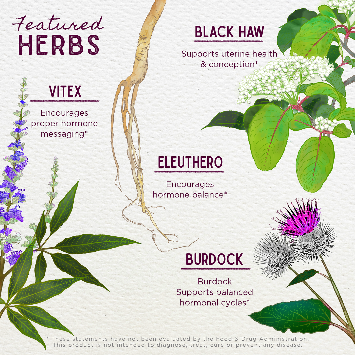 - Vitex berry: Vitex agnus-castus, also known as Chaste berry, is a plant that has been used for wellness purposes for thousands of years. Vitex supports hormonal balance and has an affinity for the female reproductive system. This herb encourages healthy menstrual cycles and supports progesterone balance. Vitex also helps soothe occasional cycle-related discomforts and supports emotional balance during monthly cycles.