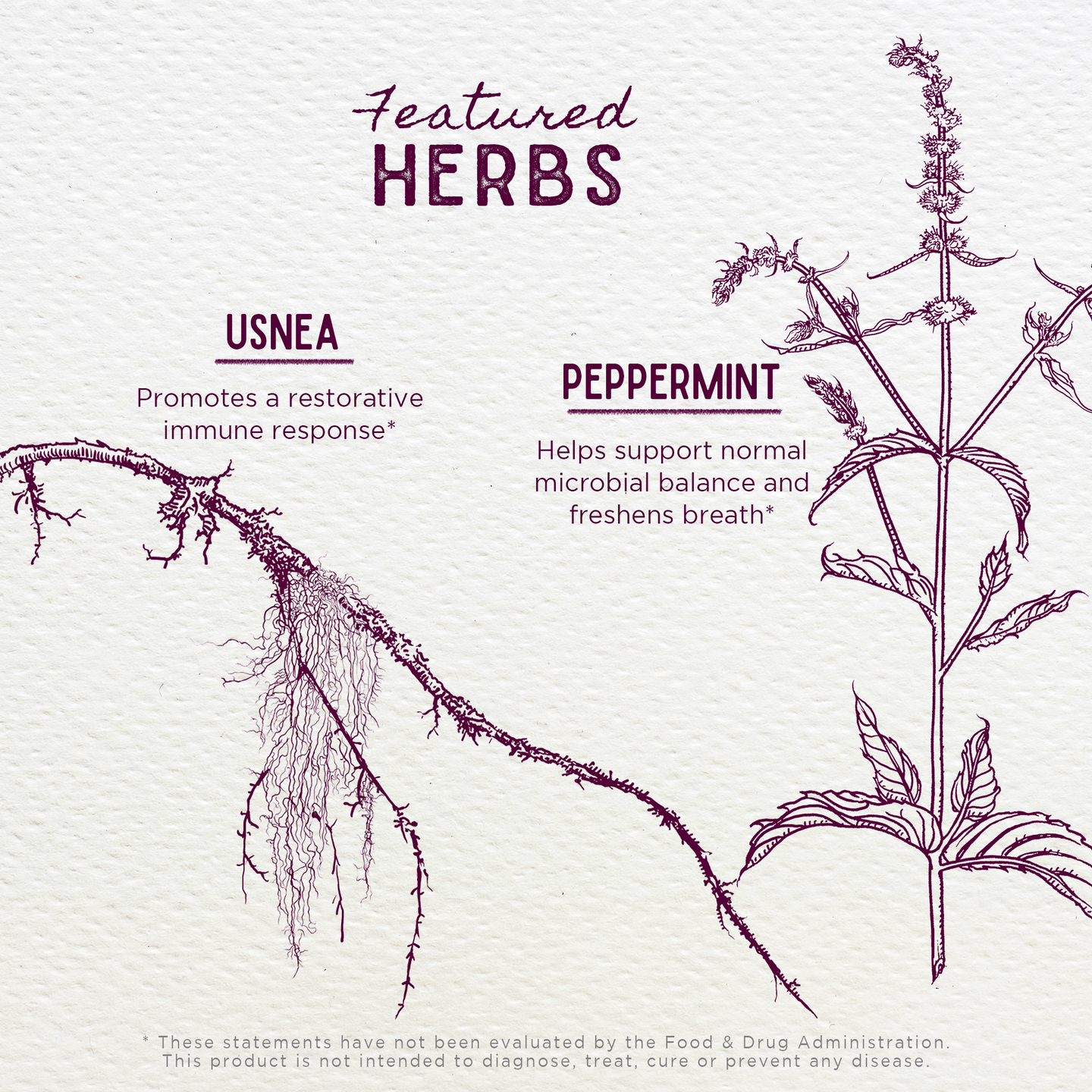 - Peppermint leaf: Mentha piperita helps support healthy microbial balance, ease clogged sinuses and freshen breath.