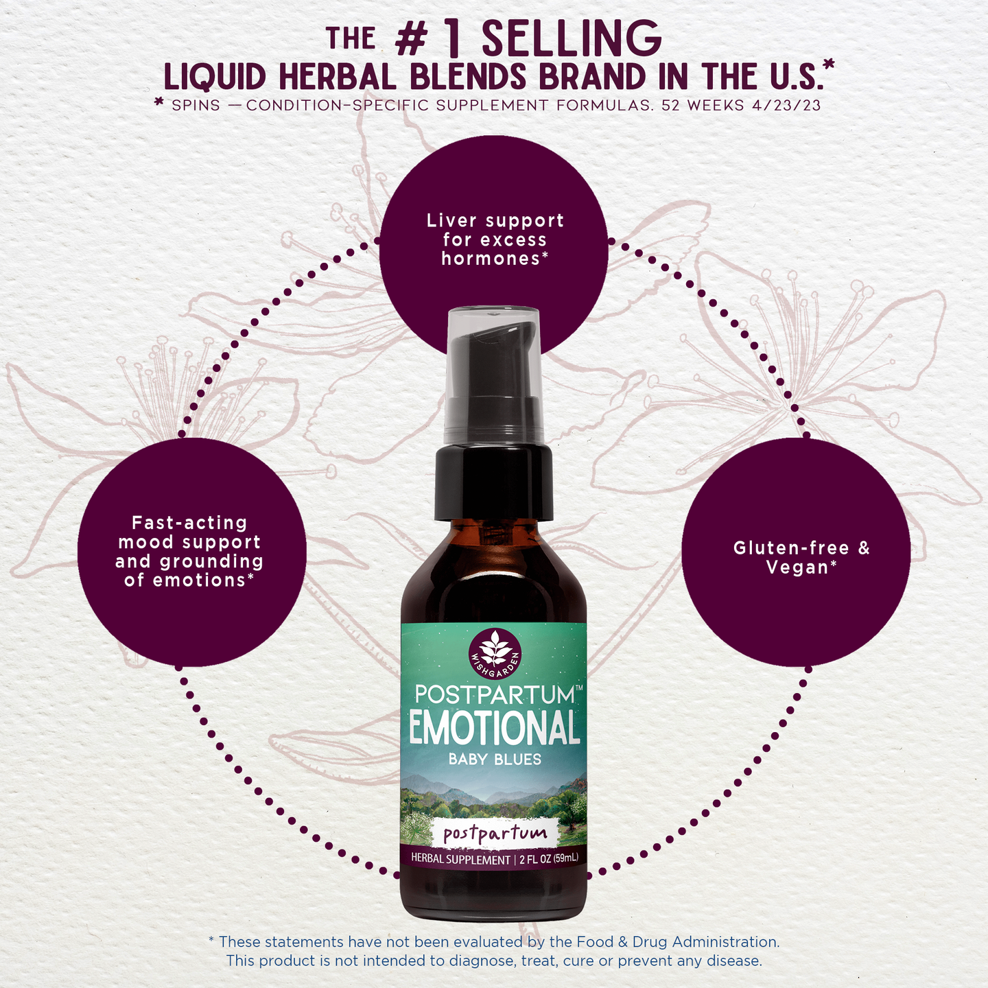 Most new moms experience some level of emotional sensitivity in those early postpartum days. works in-the-moment to rescue your mood and ground your emotions. With liver support for those raging hormones, nervous system support for those restless thoughts, and mood uplifters to cheer you up, you'll bounce back with a new zest for life!